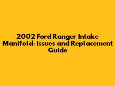 2002 Ford Ranger Intake Manifold: Issues, Replacement