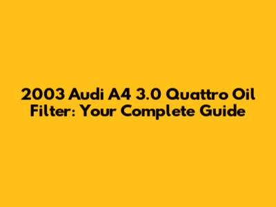 2003 Audi A4 3.0 Quattro Oil Filter: Everything You Need