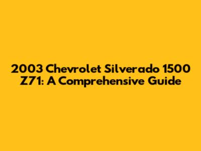 2003 Silverado 1500 Z71: A Comprehensive Guide