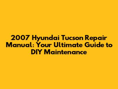 2007 Hyundai Tucson Repair Manual: Your Ultimate Guide