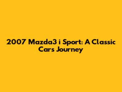 2007 Mazda3 I Sport: A Classic Car's Journey