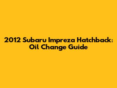 2012 Subaru Impreza Hatchback: Oil Change Guide
