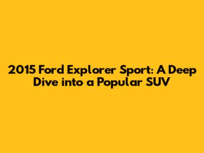 Unveiling the 2015 Ford Explorer Sport: What Makes It Tick?