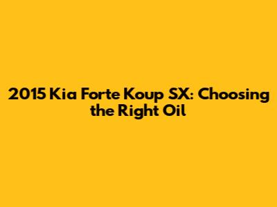 Choosing the right oil for your 2015 Kia Forte Koup SX is super important for keeping your ride running smoothly and extending its life. Engine oil acts as the lifeblood of your car, lubricating its many moving parts to prevent wear and tear, dissipating heat, and removing debris. Using the correct type of oil ensures that your engine performs optimally and avoids potential damage. So, let's dive into the specifics of selecting the best oil for your 2015 Kia Forte Koup SX. Understanding the manufacturer's recommendations, considering the climate you drive in, and knowing the different types of oil available will guide you in making an informed decision. Remember, using the wrong oil can lead to decreased fuel efficiency, increased engine wear, and even costly repairs down the road. So, taking the time to get it right is well worth the effort to keep your Kia Forte Koup SX in tip-top shape. Regular oil changes with the right oil not only protect your engine but also contribute to a smoother, more enjoyable driving experience. We'll explore the recommended oil types, viscosity grades, and brands that are suitable for your specific model year to help you make the best choice for your vehicle's needs. Stay tuned as we break down all the essential information you need to know about selecting the perfect oil for your beloved 2015 Kia Forte Koup SX.