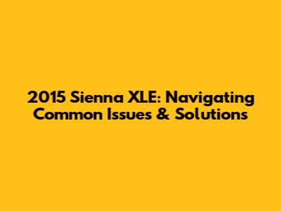 2015 Sienna XLE: Common Issues & Solutions
