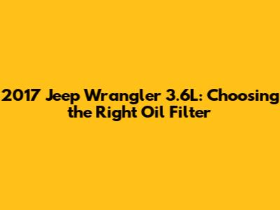 Hey guys! If you're a proud owner of a 2017 Jeep Wrangler with the robust 3.6L engine, you already know how important it is to keep that bad boy running smoothly. One of the most crucial aspects of engine maintenance is, of course, the oil filter. Choosing the right oil filter ensures that your engine stays clean, efficient, and ready for all those off-road adventures. Today, we’re diving deep into everything you need to know about selecting the best oil filter for your 2017 Jeep Wrangler 3.6L.