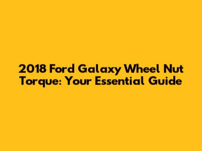 2018 Ford Galaxy Wheel Nut Torque: Your Guide
