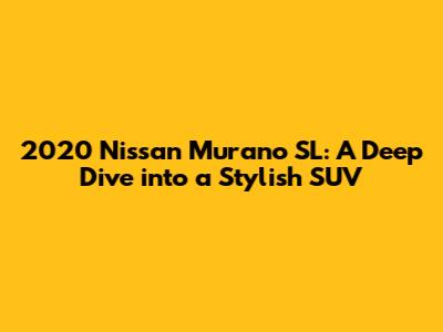 Hey car enthusiasts! Today, we're diving deep into the 2020 Nissan Murano SL, a mid-size SUV that blends style, comfort, and technology. If you're in the market for a vehicle that turns heads and offers a premium driving experience, you're in the right place. We'll explore everything from its sleek design and luxurious interior to its powerful engine and advanced features. So, buckle up, and let's get started!