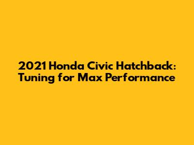 Tuning your 2021 Honda Civic Hatchback can be a rewarding experience. By carefully selecting the right modifications and working with experienced professionals, you can transform your Civic into a high-performance machine that's both fun to drive and reliable. Remember to prioritize safety, legality, and reliability throughout the tuning process. Happy tuning!