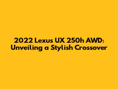 Hey guys, are you in the market for a luxurious and fuel-efficient crossover? Well, look no further because the 2022 Lexus UX 250h AWD might be the perfect ride for you! This article dives deep into what makes this car stand out, covering everything from its stylish design and impressive performance to its advanced tech and safety features. We'll explore why the Lexus UX 250h AWD is a fantastic choice for those seeking a premium driving experience. So, buckle up, because we're about to take a closer look at this amazing car. In this article, we'll discuss the UX 250h's features, comparing it to its rivals, and providing valuable insights to help you decide if it's the right fit. It's time to find out if this crossover is the perfect match for you! The Lexus UX 250h AWD seamlessly blends luxury, efficiency, and practicality, making it a compelling option in the competitive crossover market. This article aims to provide a comprehensive overview of the vehicle, highlighting its key attributes and helping you make an informed decision. Whether you're a seasoned Lexus enthusiast or a newcomer to the brand, you'll find plenty to appreciate about the UX 250h AWD. Let's delve into what sets this vehicle apart and why it continues to garner attention from car lovers worldwide. The 2022 Lexus UX 250h AWD is designed for those who appreciate both style and substance. It's a vehicle that doesn't compromise on either luxury or fuel efficiency, making it an ideal choice for the modern driver. We'll examine its elegant design, its innovative features, and how it performs on the road, ensuring you have all the information you need.
