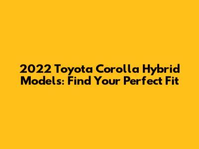 Hey guys! Are you thinking about going hybrid and eyeing the 2022 Toyota Corolla Hybrid? Smart choice! It's fuel-efficient, reliable, and stylish. But with a few different models available, how do you choose the right one? Don't worry, I'm here to break it down for you in a way that's easy to understand. We'll dive into the specifics of each trim level, highlighting the key features, differences, and what kind of driver they're best suited for. By the end of this article, you'll be a 2022 Corolla Hybrid expert, ready to confidently pick the model that perfectly matches your needs and lifestyle. So, let's get started and explore the fantastic world of the 2022 Toyota Corolla Hybrid!