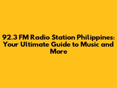92.3 FM Radio Station Philippines: Your Ultimate Guide