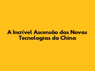 A Incrível Ascensão Das Novas Tecnologias Da China