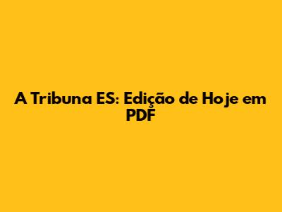 A Tribuna ES: Edição De Hoje Em PDF