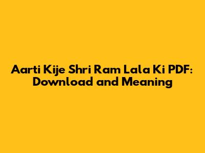Aarti Kije Shri Ram Lala Ki PDF: Download And Meaning