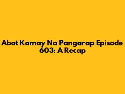 Hey, Abot Kamay Na Pangarap fans! Let's dive straight into the juicy details of Episode 603. This episode was a rollercoaster of emotions, filled with drama, suspense, and heartwarming moments that kept us all glued to our screens. Whether you missed it or just want to relive the highlights, this recap has got you covered. We'll break down all the major plot points, character developments, and those OMG moments that everyone's been talking about. So, grab your popcorn, settle in, and let's get started!