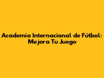 Academia Internacional De Fútbol: Mejora Tu Juego