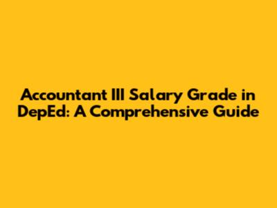 In conclusion, understanding the Accountant III salary grade within the Department of Education (DepEd) is essential for financial planning and career advancement. This guide has provided a comprehensive overview of the role, its responsibilities, and the factors that influence compensation. By understanding the salary grade, the impact of experience and qualifications, and the available opportunities for career advancement, professionals can make informed decisions about their careers and financial futures. Continuous professional development, networking, and a strategic approach to career planning are all crucial for maximizing your earning potential as an Accountant III in DepEd. Stay informed, stay proactive, and take control of your career journey to achieve your professional goals.