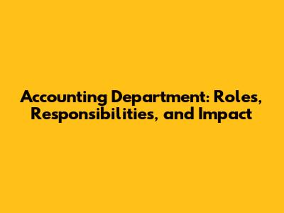 Accounting Department: Roles, Responsibilities, And Impact