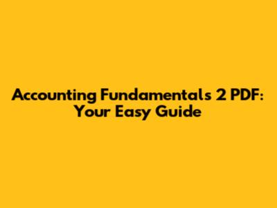 Accounting Fundamentals 2 PDF: Your Easy Guide