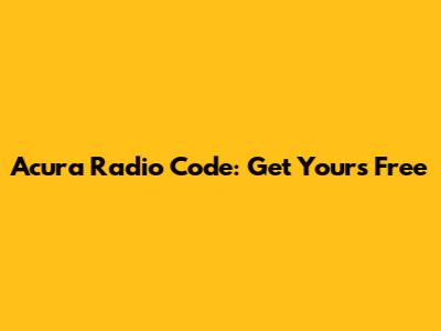 Acura Radio Code: Get Yours Free
