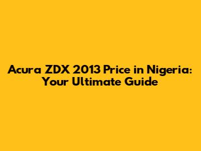 Acura ZDX 2013 Price In Nigeria: A Complete Guide