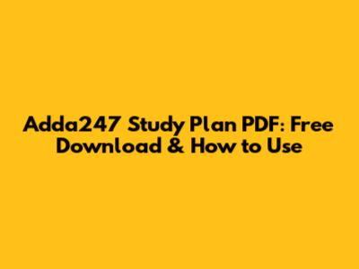 Adda247 Study Plan PDF: Free Download & How To Use