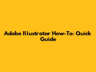 Adobe Illustrator How-To: Quick Guide
