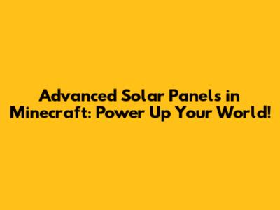 Advanced Solar Panels In Minecraft: Power Up Your World!