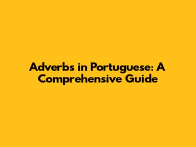 Adverbs In Portuguese: A Comprehensive Guide