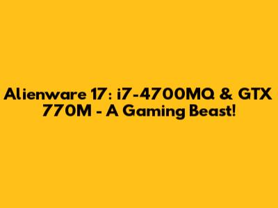 Let's dive into a detailed look at the Alienware 17 configuration featuring the Intel Core i7-4700MQ processor and the NVIDIA GeForce GTX 770M graphics card. This powerhouse was a serious contender back in its day, offering gamers and enthusiasts a compelling blend of performance and portability. Even though newer hardware has since taken over, understanding the capabilities and nuances of this classic gaming laptop can provide valuable insights, especially if you're considering picking one up on the used market or simply want to reminisce about the good old days of mobile gaming.
