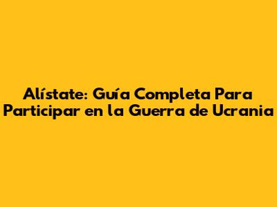 Alístate: Guía Completa Para Participar En La Guerra De Ucrania