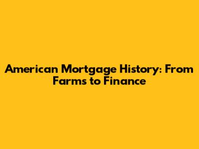 American Mortgage History: From Farms To Finance