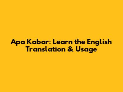Apa Kabar: Learn The English Translation & Usage