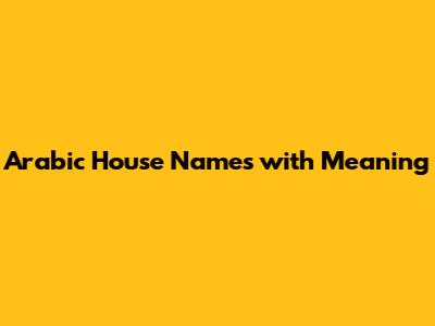 Popular Arabic House Names and Their Meanings
