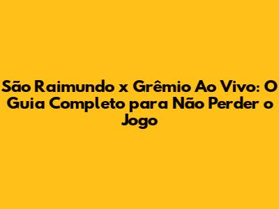 Hey pessoal! Se você é fã de futebol, prepare-se! O jogo entre São Raimundo e Grêmio está chegando, e a emoção está no ar. Para garantir que você não perca nenhum lance, preparei este guia completo com tudo o que você precisa saber: onde assistir, horários e o que esperar dessa partida eletrizante. Vamos juntos nessa!