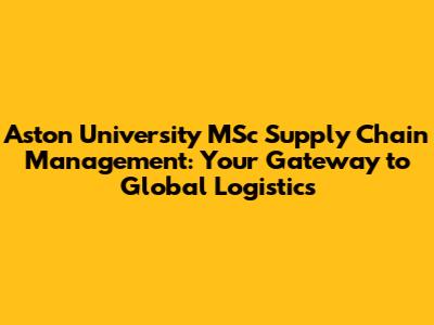 Aston University MSc Supply Chain Management