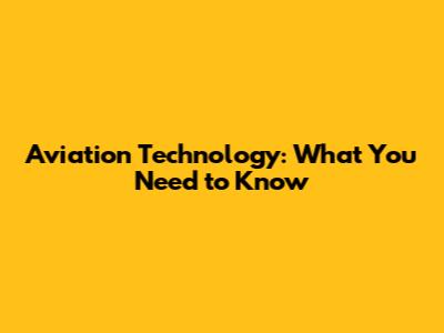 Aviation Technology: What You Need To Know