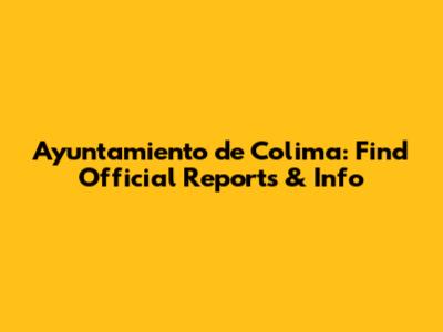 Ayuntamiento De Colima: Find Official Reports & Info