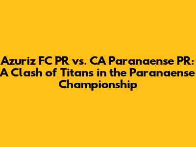Hey guys! Get ready for an electrifying clash in the Paranaense Championship! We're talking about Azuriz FC PR going head-to-head with CA Paranaense PR. This is not just any game; it's a battle that could set the tone for the entire season. So, buckle up, because we're diving deep into the details, analyzing everything from team strategies to key players, and giving you the lowdown on what to expect. This season, both teams are aiming to make a statement, and this match is the perfect stage. We’ll be looking at their previous encounters, current form, and what tactics they might employ to outsmart each other. Plus, we'll discuss the potential impact this game could have on their overall standings in the championship. This is a must-watch for any soccer enthusiast, and we're here to break it all down for you, step by step.