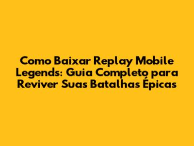 Como baixar replay Mobile Legends? Aí, galera, se você é fã de Mobile Legends: Bang Bang, com certeza já teve aqueles momentos épicos, jogadas incríveis e batalhas de tirar o fôlego que gostaria de reviver, né? A boa notícia é que o jogo te dá essa chance através dos replays, ou seja, as gravações das suas partidas. Mas, como baixar replay Mobile Legends e assistir a esses momentos gloriosos? Relaxa, porque neste guia completo, vamos te mostrar tudo o que você precisa saber para baixar e desfrutar dos seus replays, além de algumas dicas extras para você se tornar um mestre em assistir e analisar suas jogadas. Preparados? Então, bora lá!