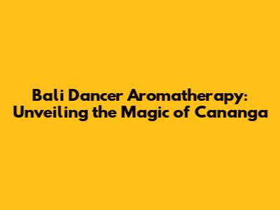 Bali Dancer Aromatherapy: Unveiling The Magic Of Cananga