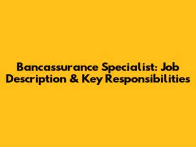 Bancassurance Specialist: Job Description & Key Responsibilities
