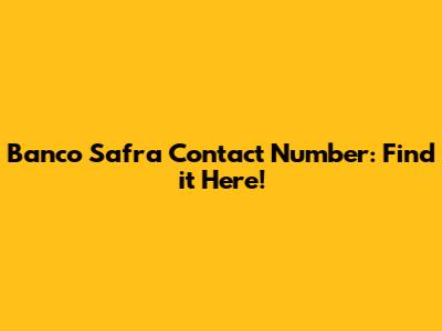 Banco Safra Contact Number: Find It Here!