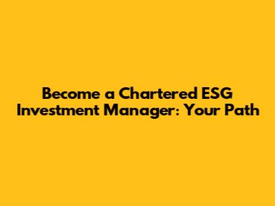 Become A Chartered ESG Investment Manager: Your Path