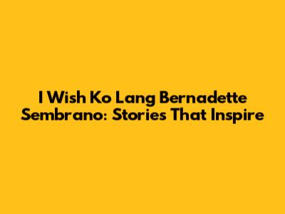 Hey guys! Ever catch an episode of "I Wish Ko Lang" hosted by the amazing Bernadette Sembrano? If not, you're seriously missing out! This show isn't just another TV program; it's a heartfelt journey into the lives of ordinary Filipinos facing extraordinary challenges. Bernadette Sembrano, with her genuine empathy and warm personality, brings these stories to life, making us laugh, cry, and, most importantly, believe in the power of hope. So, let's dive deep into what makes "I Wish Ko Lang" such a beloved show and why Bernadette Sembrano is the perfect person to guide us through these emotional roller coasters.