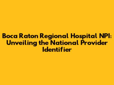 Hey guys! Ever wondered about the Boca Raton Regional Hospital and its National Provider Identifier (NPI)? Well, you're in the right place! We're diving deep into the world of healthcare identification, exploring what an NPI is, why it matters, and specifically, how it relates to Boca Raton Regional Hospital. Get ready for a straightforward, easy-to-understand breakdown of this essential piece of the healthcare puzzle. This article aims to provide you with everything you need to know about the Boca Raton Regional Hospital NPI, ensuring you're well-informed and equipped with the knowledge to navigate the healthcare system with confidence. So, buckle up, and let's unravel this important topic together!