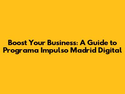 Boost Your Business: A Guide To Programa Impulso Madrid Digital