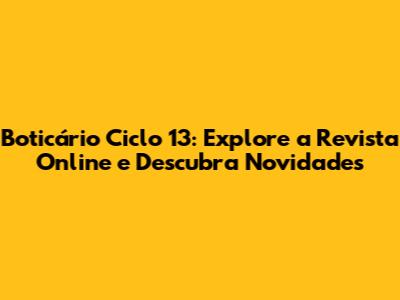 Boticário Ciclo 13: Guia Completo Da Revista Online