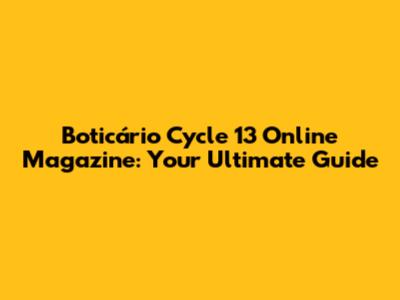 Boticário Cycle 13 Online Magazine: All You Need To Know!